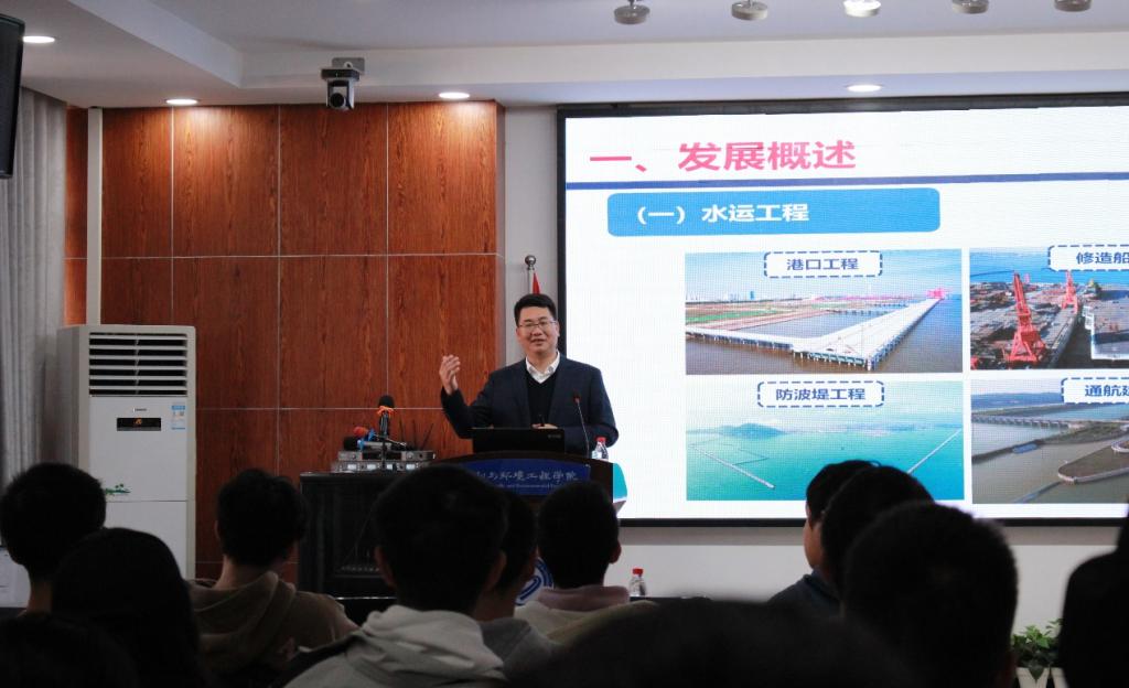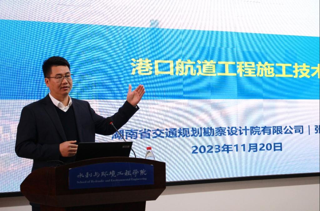 2023年11月20日上午,应开云kaiyun体育水利与环境工程学院邀请,湖南省交通规划勘察设计院有限公司院长张爱平在云塘校区工科三号楼B319为开云官网师生进行题为“港口航道工程施工技术与水运工程智慧化”的通识教育讲座和经验分享交流会。会议由水利学院盛丰副院长主持,100余名师生参会。