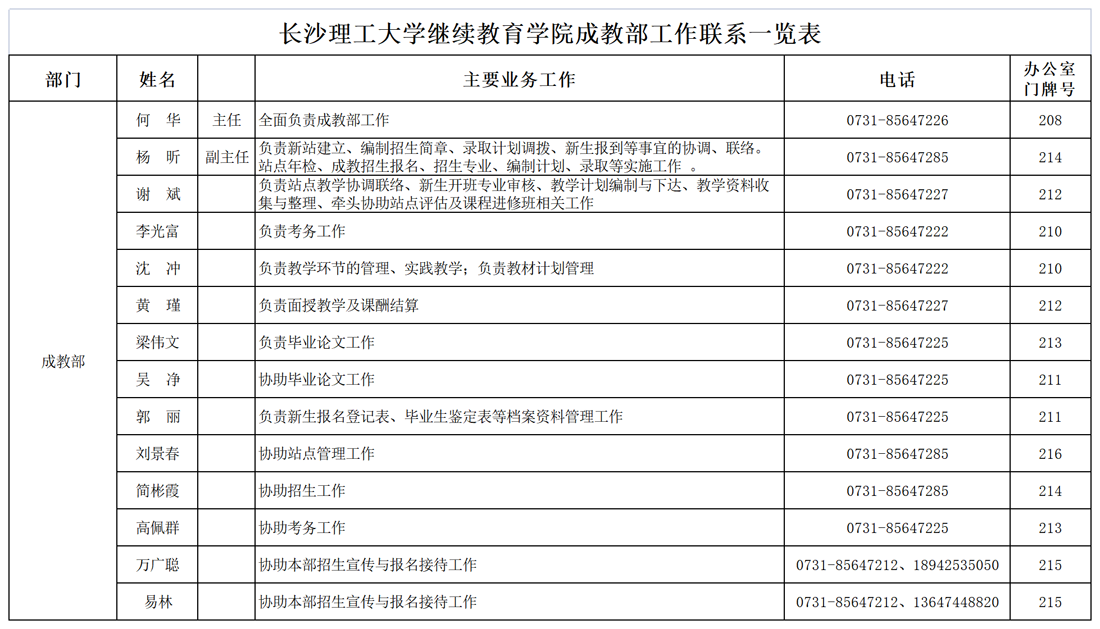 成教部工作联系一览表