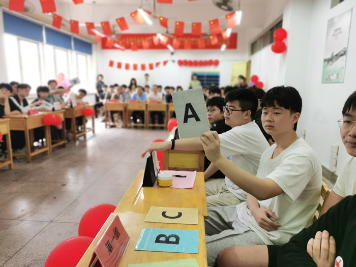 知识竞赛共设置了四个环节,“勇往直前”必答题、“争分夺秒”抢答题、“我爱唱红歌”听歌识曲并接唱、“巅峰决策”选题作答。在必答题环节,参赛选手沉着思考、冷静应答,不错失任何分数。进入抢答题环节,选手们更是热情高涨,全力以赴地抢答,竞争分外激烈。设置巧妙的听歌识曲环节,兼具知识性和趣味性,选手们通过现场听歌猜歌名并演唱的形式进行比拼,掌声、欢呼声此起彼伏。最后的选题作答环节将整场知识竞赛推向了高潮。分值越高,题目难度越大。对选手的应辨能力和答题能力都是极大的挑战。通过激烈的角逐,最终S2101班获得了本次知识竞赛的第一名,S2004班获得了第二名,S2001班获得了第三名。