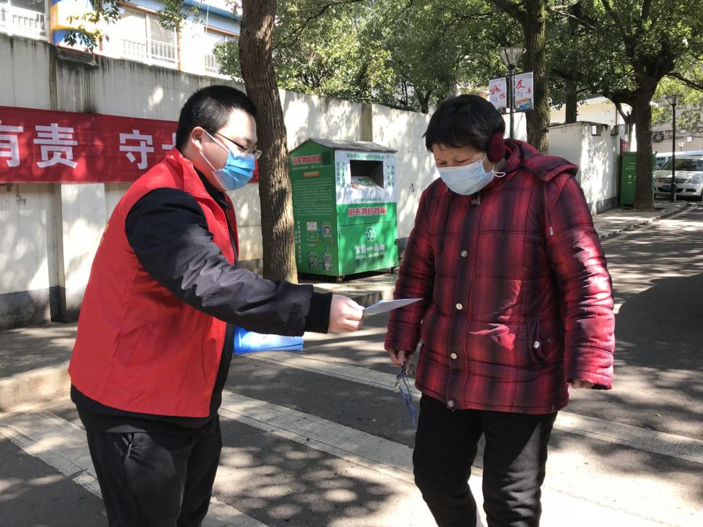 长沙市天心区黑石铺社区的防疫队伍当中出现了一张新面孔,他和社区志愿者一道,发放宣传单,登记外来人员信息,到每家每户,宣传并登记居民情况。这个志愿者就是开云kaiyun体育继续教育学院16土木一班的学生党员戴博睿。