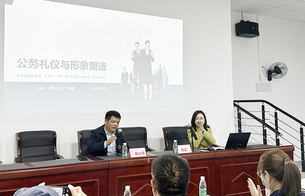 培训会上,杨晨老师强调了礼仪的重要性,她“以展礼仪风采 拓青年视野”为引题,提出礼仪不是用来装的,而是去应用的,要把人做好,把事办好,把问题解决好,对方的认可,构筑和谐的人际关系,搭建良好的事业平台尤其重要。杨晨老师通过旁征博引的讲解和生动的图片展示,向参训人员介绍了礼仪的主要内容、特点、原则等理论知识,全面讲解了仪表着装、举止交往、沟通礼仪、公务礼仪和电话礼仪等基本常识,使参训人员了解了在各种社交活动中提升品味修养和魅力的技巧。