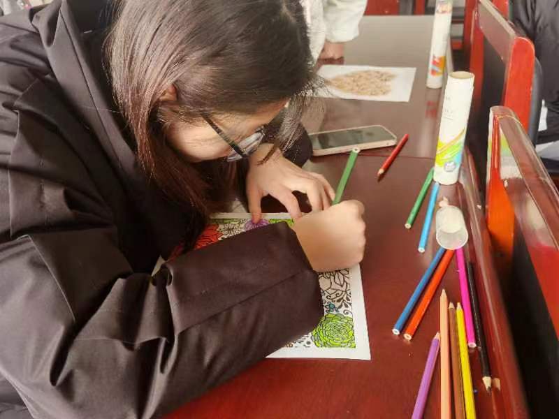 为舒缓学生学习压力情绪,丰富学生校园文化,提升学生心理素养,3月28日,学院学工部组织开展曼陀罗绘画情绪疏压心理团体辅导,开学初心理排查中出现学业压力的同学参加了此次活动。