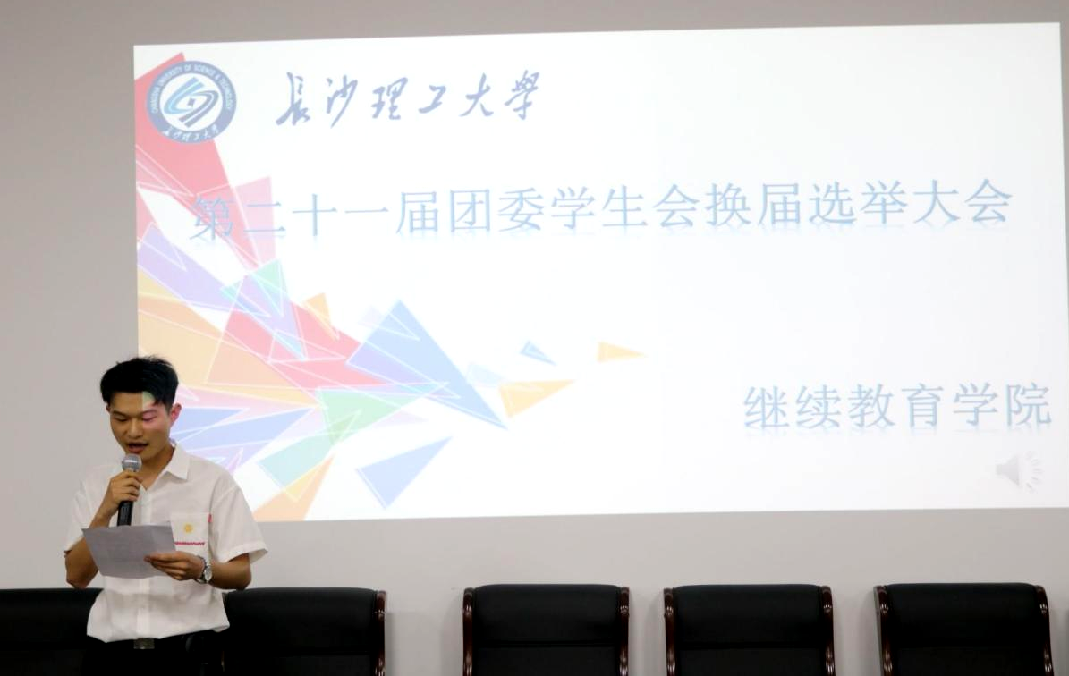 第二十届团学会主席刘也富代表二十届团委、学生会做了工作总结,同时院团委学生会进行了新一届干部竞选,选出了学院第二十一届团委、学生会干部。
