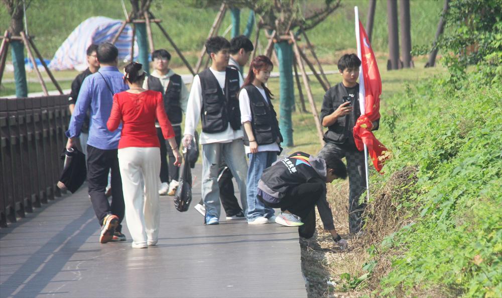 随后大家两两分组,拾取松雅湖湿地公园的白色垃圾,维护好松雅湖公园的清洁整齐。