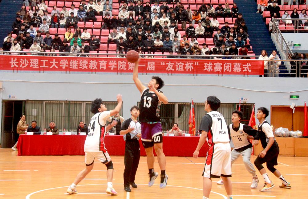 闭幕式在篮球赛决赛后进行。赛场上角逐冠军的是继教学院C2304班的逐梦队与建筑学院的郭导最帅对不队。比赛竞争激烈,现场氛围如火如荼,经过不断的拼搏,由继教学院逐梦队获得“友谊杯”球赛篮球赛冠军。