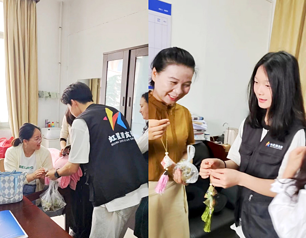 粽子出锅后,虹星团支部的成员们把一个个热乎乎的粽子送给了学院的老师们,与老师们共享他们的劳动果实。