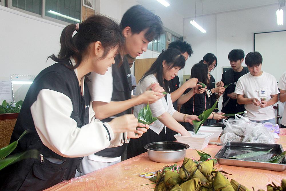 在14号教学楼分团委学生会办公室,虹星团支部成员在学工部韩老师的详细讲解和手把手的教学指导下,分组进行了操作实践,积极学习如何包粽子,卷粽叶、放糯米、放馅料、捆扎绳子等,体验着制作美食的快乐,切身感受到了端午节浓浓的节日氛围。