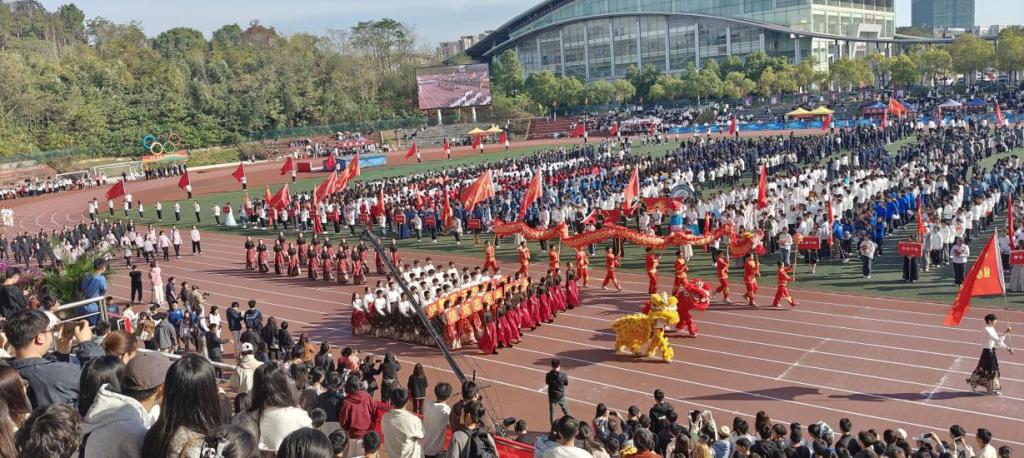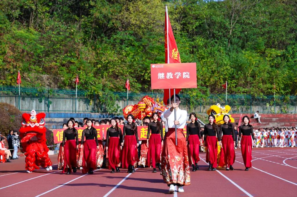 开幕式上,学生方阵迈着铿锵有力的步伐,高呼“信笃志坚、奋起争先、继教学子、敢为人先!”的口号,坚毅的面庞彰显出继教学子坚韧不拔、昂扬向上和永不言败的精神。