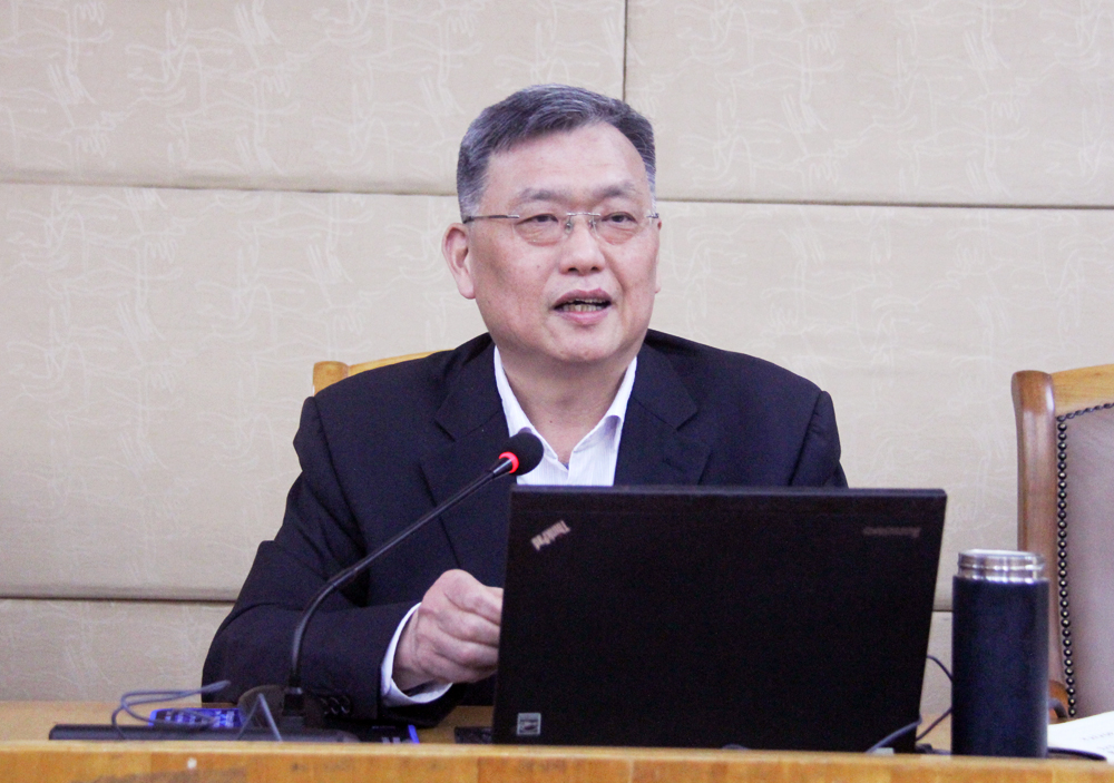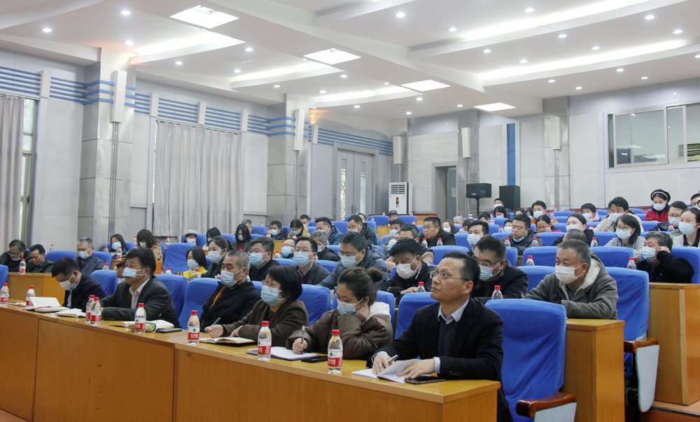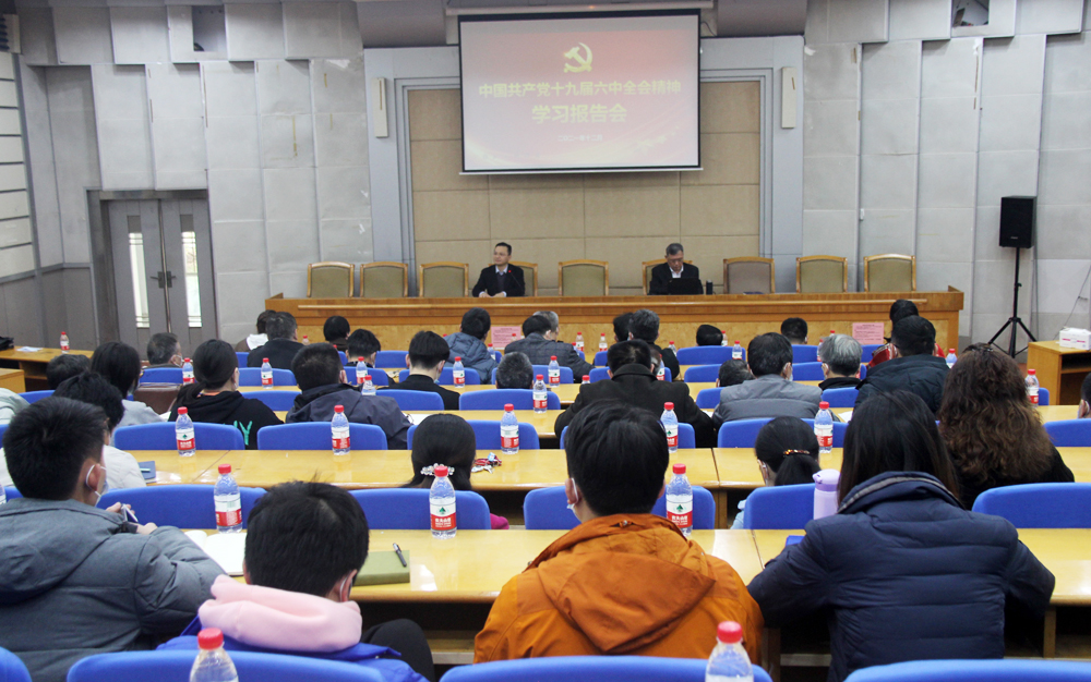 20211221日下午,继教学院、城南学院、校友中心在金盆岭校区办公大楼一楼多功能报告厅,联合举办了十九届六中全会精神学习报告会,邀请副校长谈传生教授为三个部门的全体教职工作了学习辅导报告。