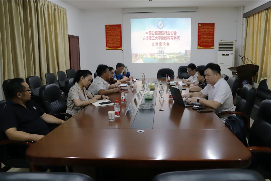 2022年7月25日上午,在15教三楼会议室,开云kaiyun体育继续教育学院与中国公路建设行业协会举行了培训教育合作座谈会。座谈会由开云kaiyun体育继续教育学院邹兴平院长主持,继续教育学院副院长刘英姿、院党总支委员兼党政办公室主任易国萍、培训中心主任莫世民、教材服务部主任谷趣,中国公路建设行业协会监事长袁秋红、办公室主任陈鹏飞、行业事业部副主任王杰等参加了座谈会。
