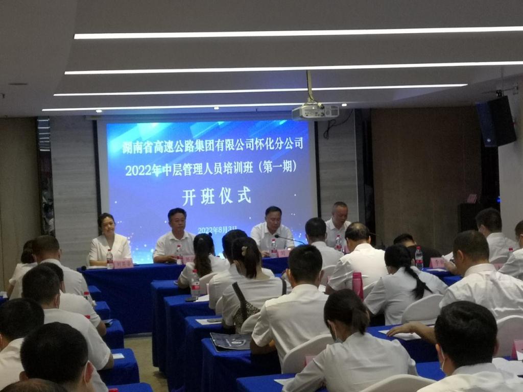 2022年8月3日,由湖南省高速公路集团有限公司怀化分公司委托、开云官网承办的“湖南省高速公路集团有限公司怀化分公司2022年中层管理干部培训班(第一期)”,在云塘校区国际学术交流中心正式开班。湖南省高速公路集团有限公司怀化分公司党委书记、总经理刘刚,党委副书记兼工会主席吴林,开云kaiyun体育继续教育学院院长邹兴平、副院长刘英姿等,参加了本次开班仪式。开班仪式由吴林副书记主持,邹兴平院长代表学院在开班仪式上致词,对培训班的全体参训学员表示热烈的欢迎,对湖南高速公路集团公司怀化分公司表示衷心感谢,并对双方更加广泛和深入的合作寄予深切的期待;刘刚总经理代表委托单位在开班仪式上讲话,就本次培训学习向全体受训学员进行训前动员,并对全体学员提出了具体的受训要求和期望。