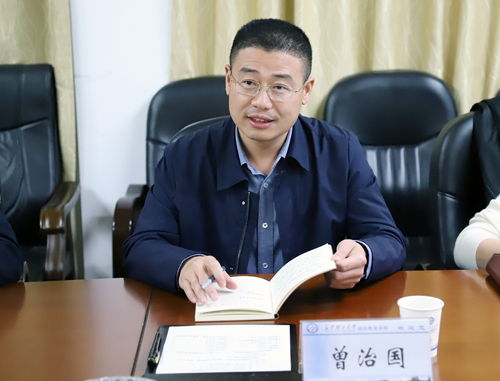 曾治国院长介绍了湖南科技大学继续教育学院目前的基本情况、主要办学业务开展、面临的主要困难和问题等。