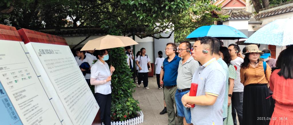 下午14:00,全体党员跟随岳麓书院工作人员,参观湖湘文化的主要发源地、党实事求是思想路线的重要策源地——岳麓书院。党员们仔细聆听讲解员介绍岳麓书院的演变延续过程及湖湘文化发源、传承等历史典故,体会到了岳麓书院的千年文化底蕴;寻着习近平总书记参观考察的足迹,在展览厅全体党员学习了习总书记在岳麓书院的发表讲话,用心感受了“惟楚有才,于斯为盛”的深刻内涵,以及“实事求是”“经世致用”等湖湘文化精髓。