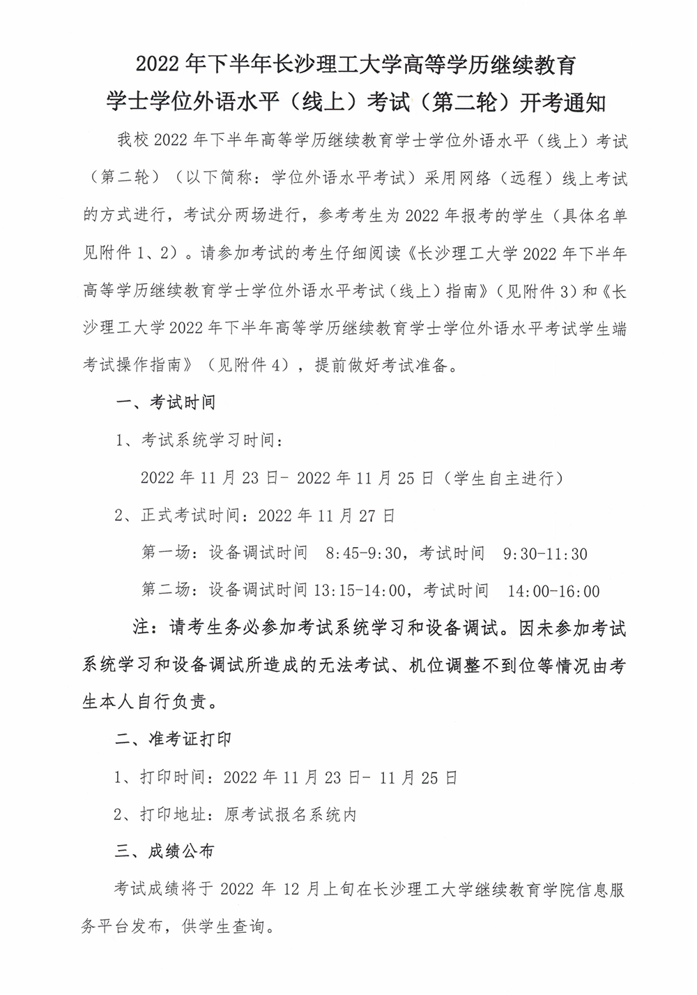 2022年下半年开云kaiyun体育高等学历继续教育学士学位外国语水平(线上)考试(第二轮)开考通知