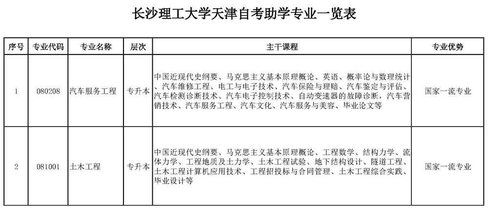 天津自考助学专业一览表
