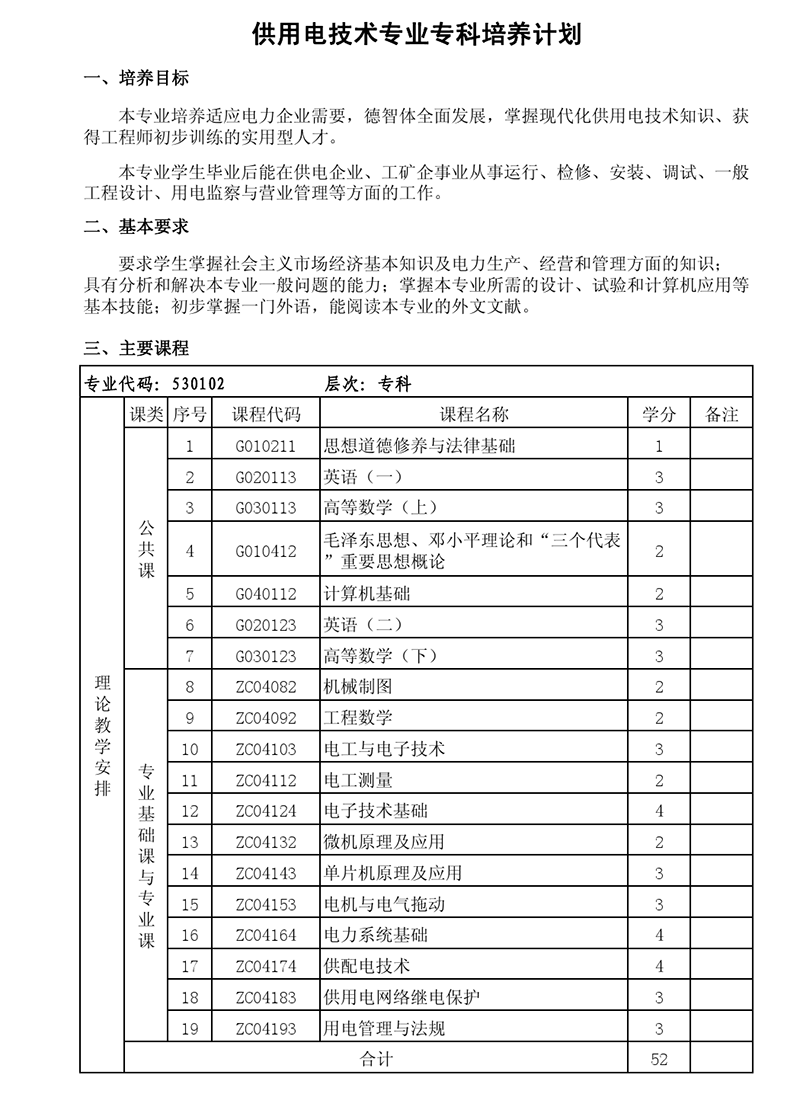 专科培养计划-专业代码:610201 计算机应用技术专业