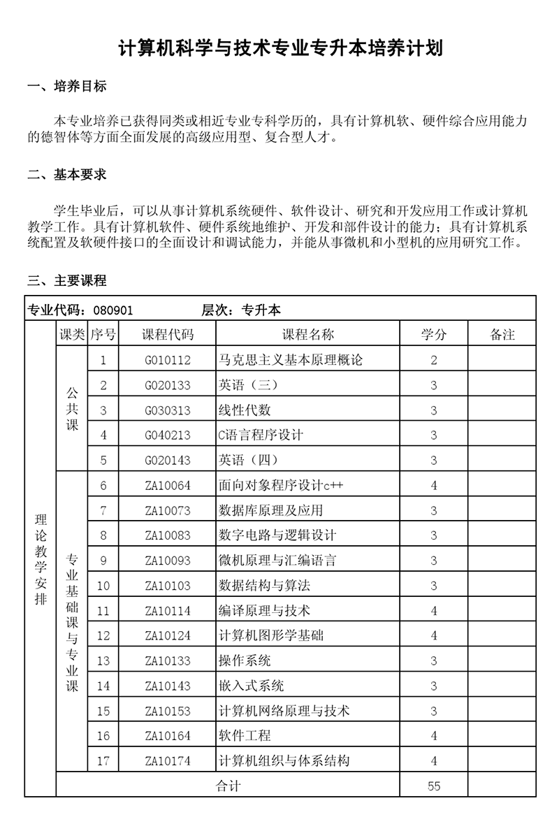 本科培养计划-专业代码:080901 计算机科学技术专业