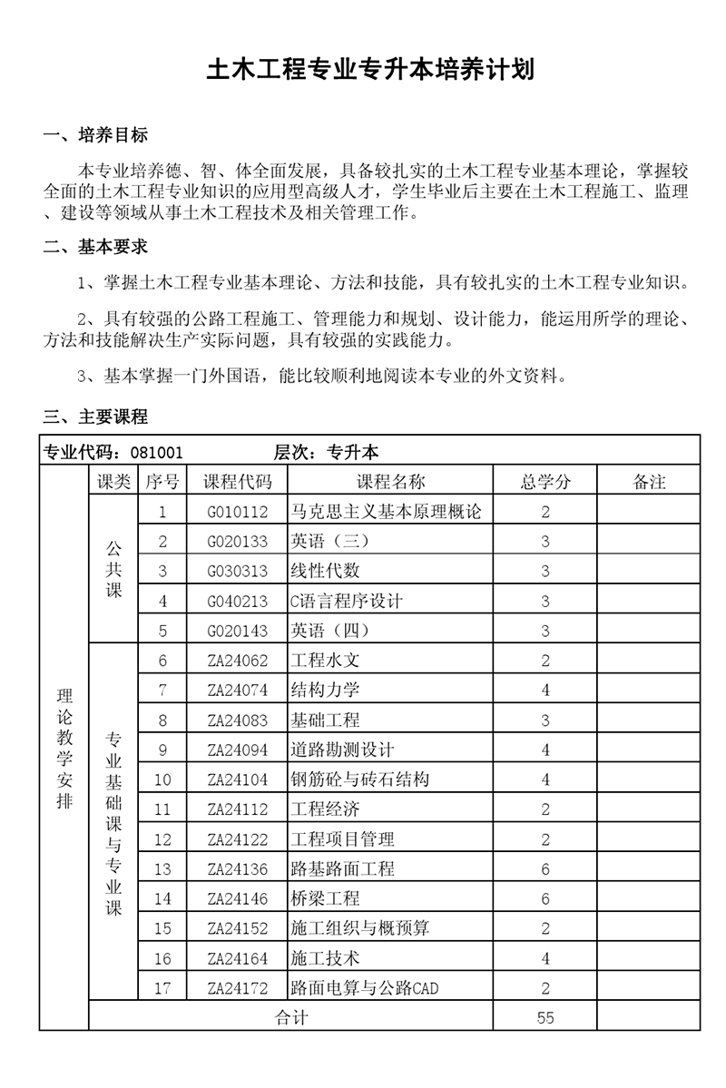 本科培养计划-专业代码:081001 土木工程专业
