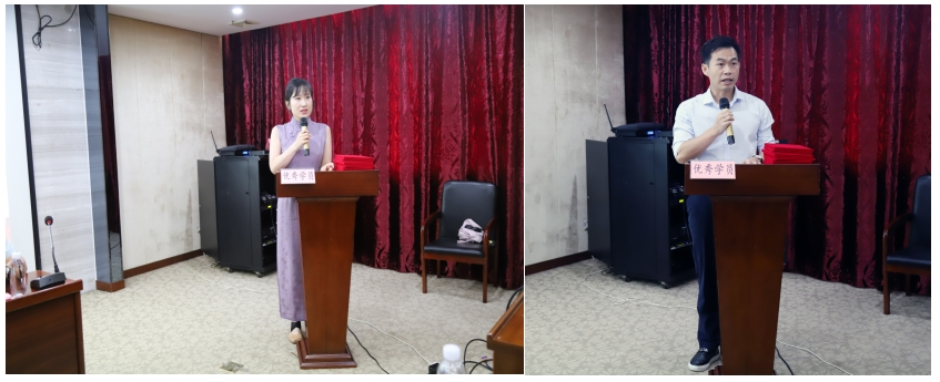 现场表彰了研修阶段的优秀学员,龚丽丽、项天祺作为代表发言,分享学习收获并感谢学校与教师的悉心指导。