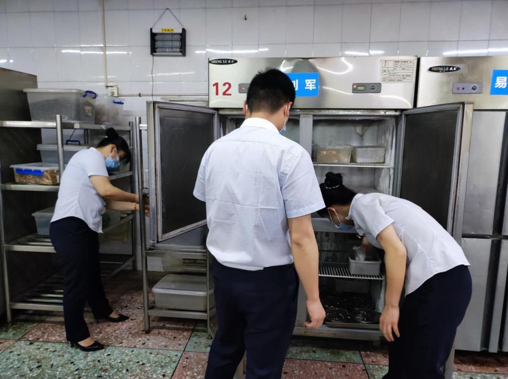 为贯彻落实学校关于食品安全指示精神,国际学术交流中心由各部门经理组成检查小组,以食品安全“四个最严”为指导,建立食品安全检查制度,定期全方位、无死角地对各部门涉及食品安全区域进行例行检查,严格做到“四有”、“两责”,保证食品安全,保障广大师生和来店客人用餐安全。