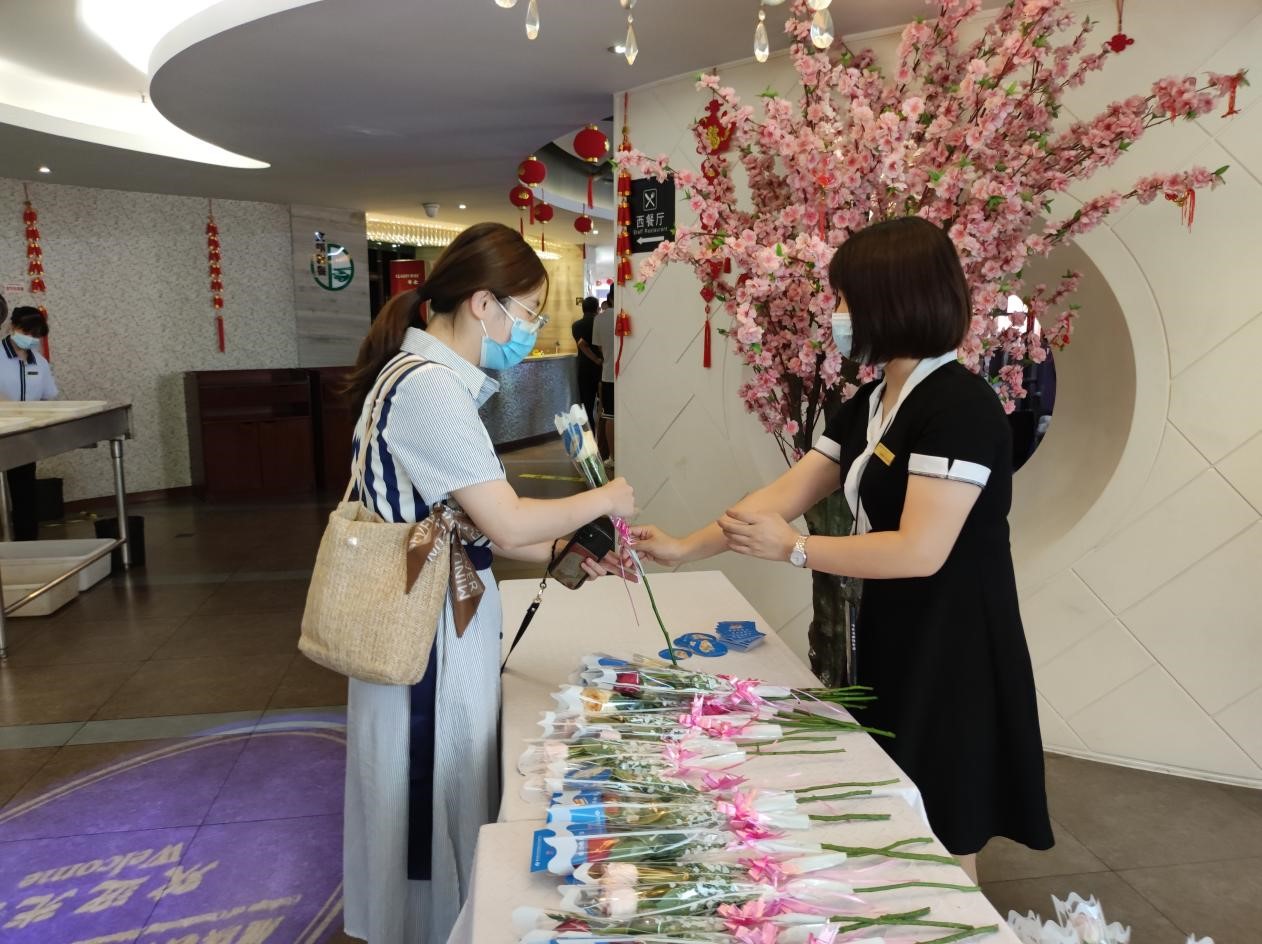 为庆祝第38个教师节,喜迎中秋节,9月9日国际学术交流中心在教工餐厅开展了鲜花赠老师的活动。