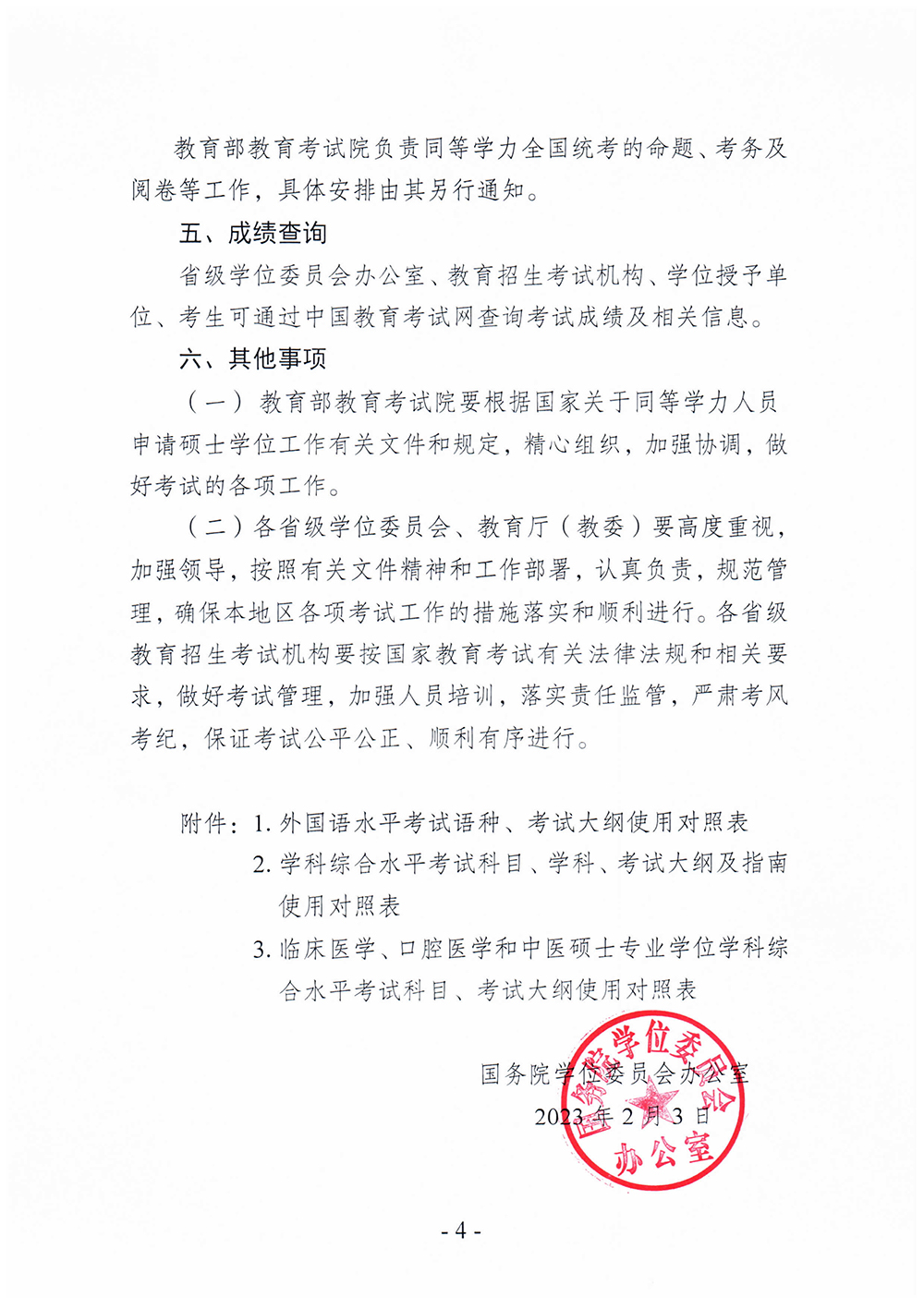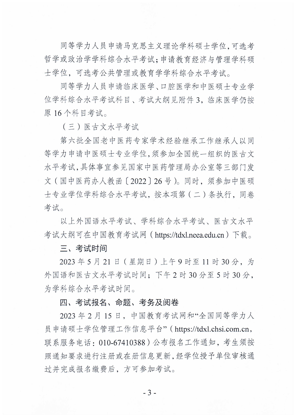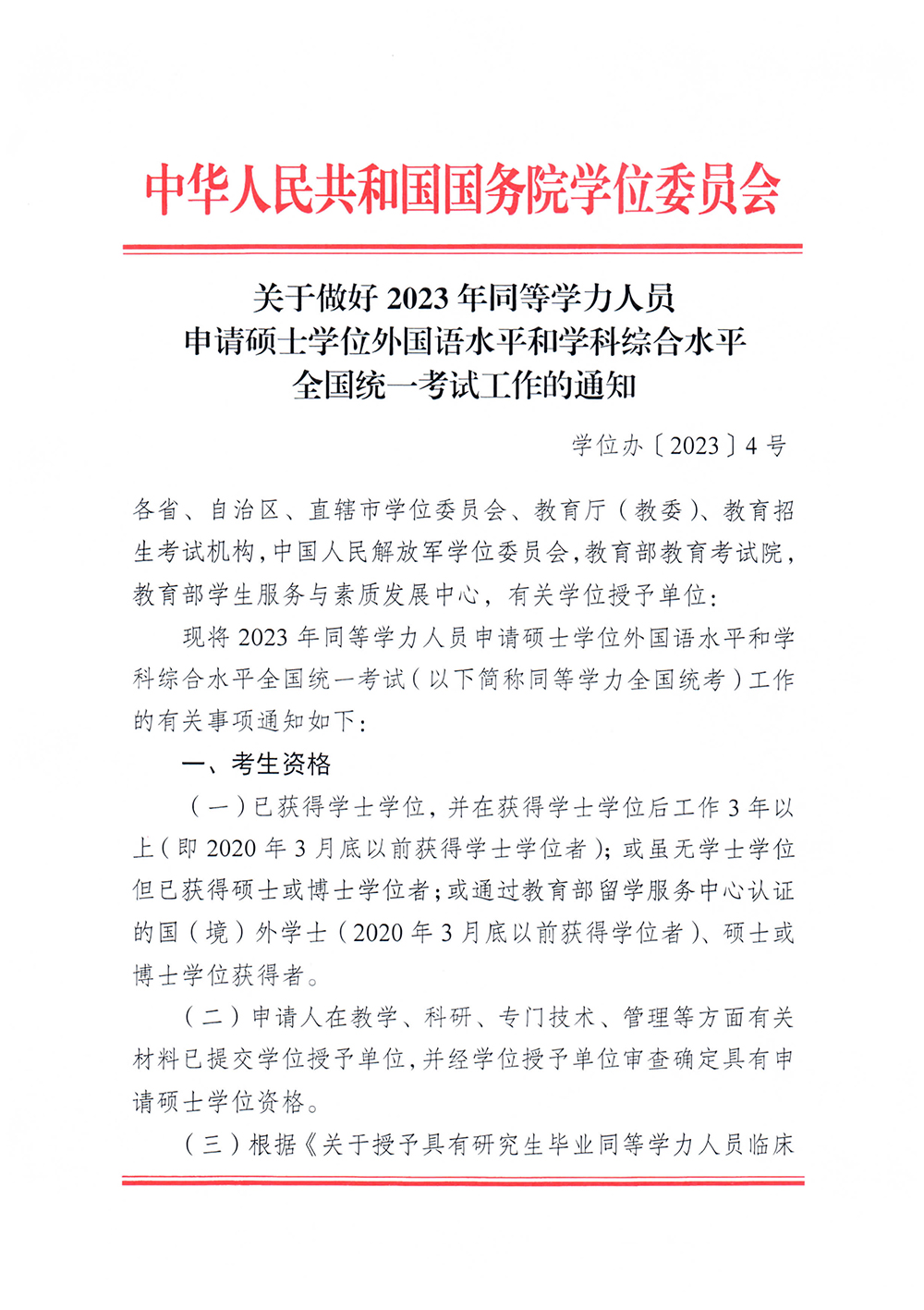 关于做好2023年同等学力人员申请硕士学位外国语水平和学科综合水平全国统一考试工作的通知