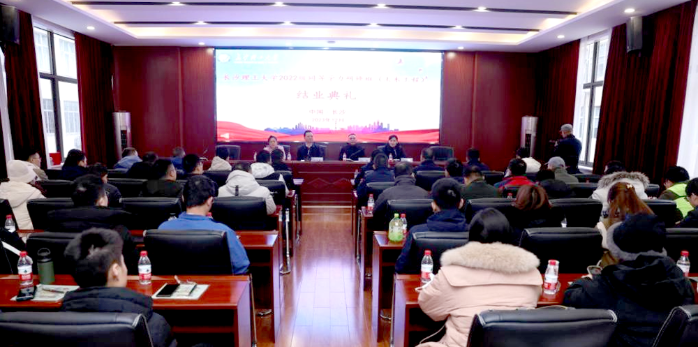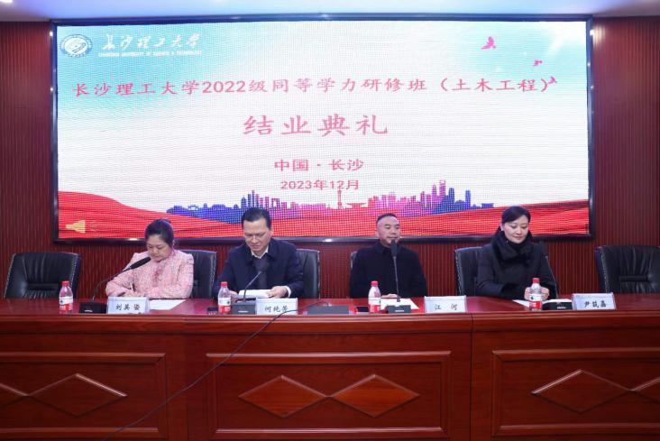 2023年12月17日,开云kaiyun体育2022级同等学力(土木工程专业)研修班结业仪式在金盆岭校区隆重举行,土木工程学院党委书记江河,研究生院副院长尹筑嘉,继续教育学院党总支书记何纯芳、副院长刘英姿等领导,出席了结业仪式。