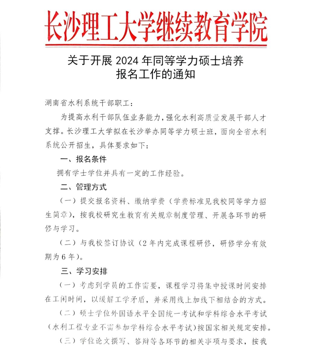 关于开展 2024 年同等学力硕士培养报名工作的通知