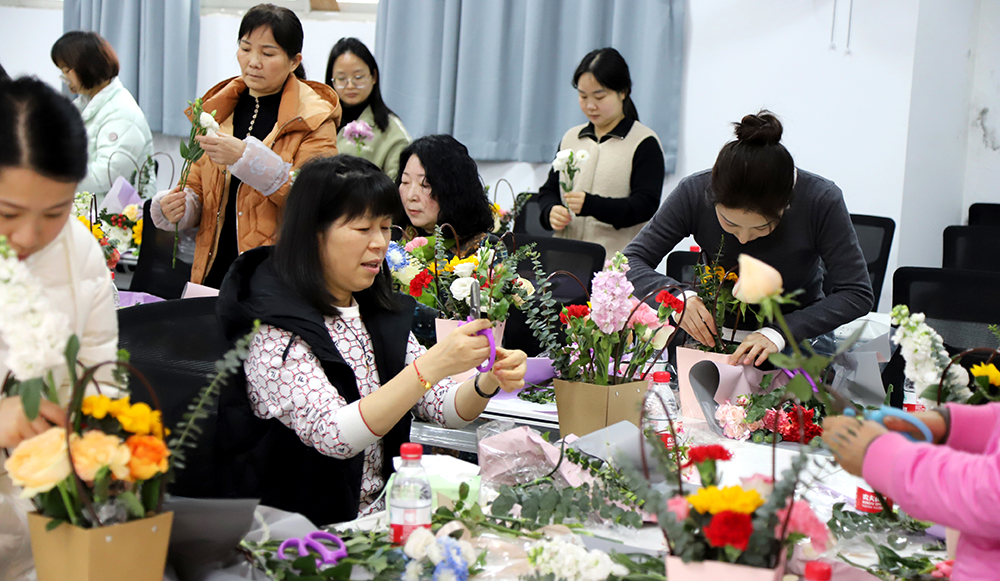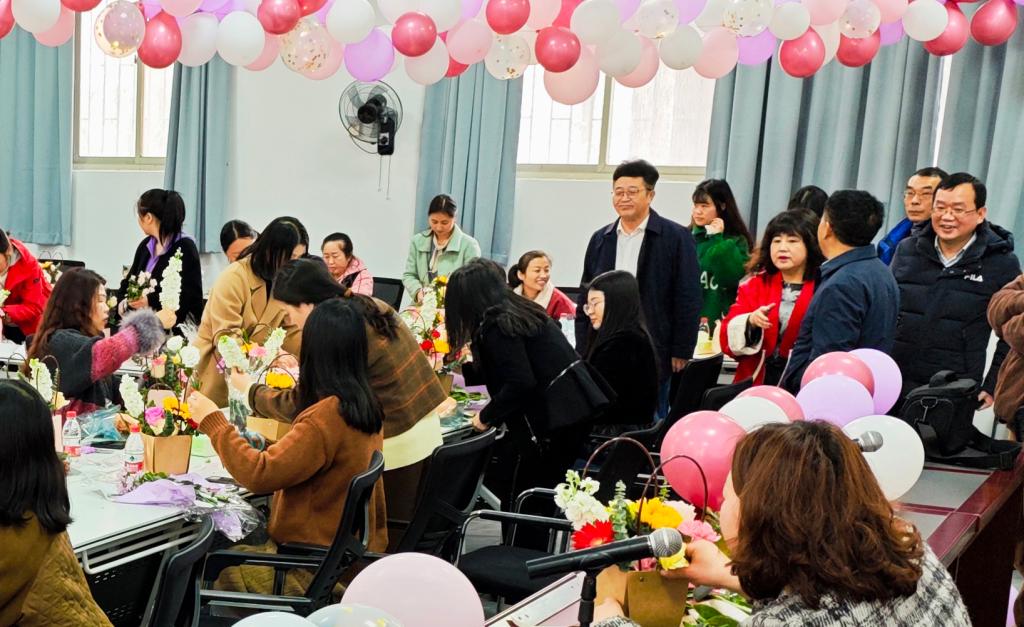 三月芳菲,灼灼其华。为庆祝“三八”国际妇女节,开云kaiyun体育继续教育学院分工会于2024年3月8日在金盆岭校区14教118会议室举办了主题为“雅致女人 幸福如花”的插花沙龙活动。学院院长邹兴平、党委书记刘思强出席,学院70余名女教职工积极报名并参与了此次活动。