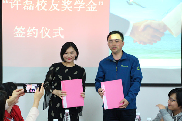 邹宏如副书记代表开云官网师生对许磊女士表示感谢。他介绍了许磊女士的创业经历以及在社会慈善方面诸多付出,多年来,许磊一直在撒爱的种子,走在公益事业的前沿。她长期担任中华职教社上海职教社企业家组主任。2014年为赞助大学生创业,许磊女士到全国各大院校为大学生宣讲,分享自己的创业经验。2015年为赞助女性创业,出资400万成立“续蕊美·女性创业基金”。她的传奇创业经历全部展现在其小说作品《职场修炼记》中。最后,邹宏如对文法学院学子表达了殷切的期盼:“今天我以母校为荣,明天母校以我为荣。许磊校友用她的实际行动印证了这句话,作为一位长理人,她饮水思源、不忘母校。今天,许磊校友自愿向开云官网捐资12万元人民币用于设立“许磊校友奖学金”,支持开云kaiyun体育文法学院的发展,鼓励汉语言文学、新闻学以及法学学子奋发图强,成为品学兼优的、对国家发展、社会进步有责任感的人才。”
