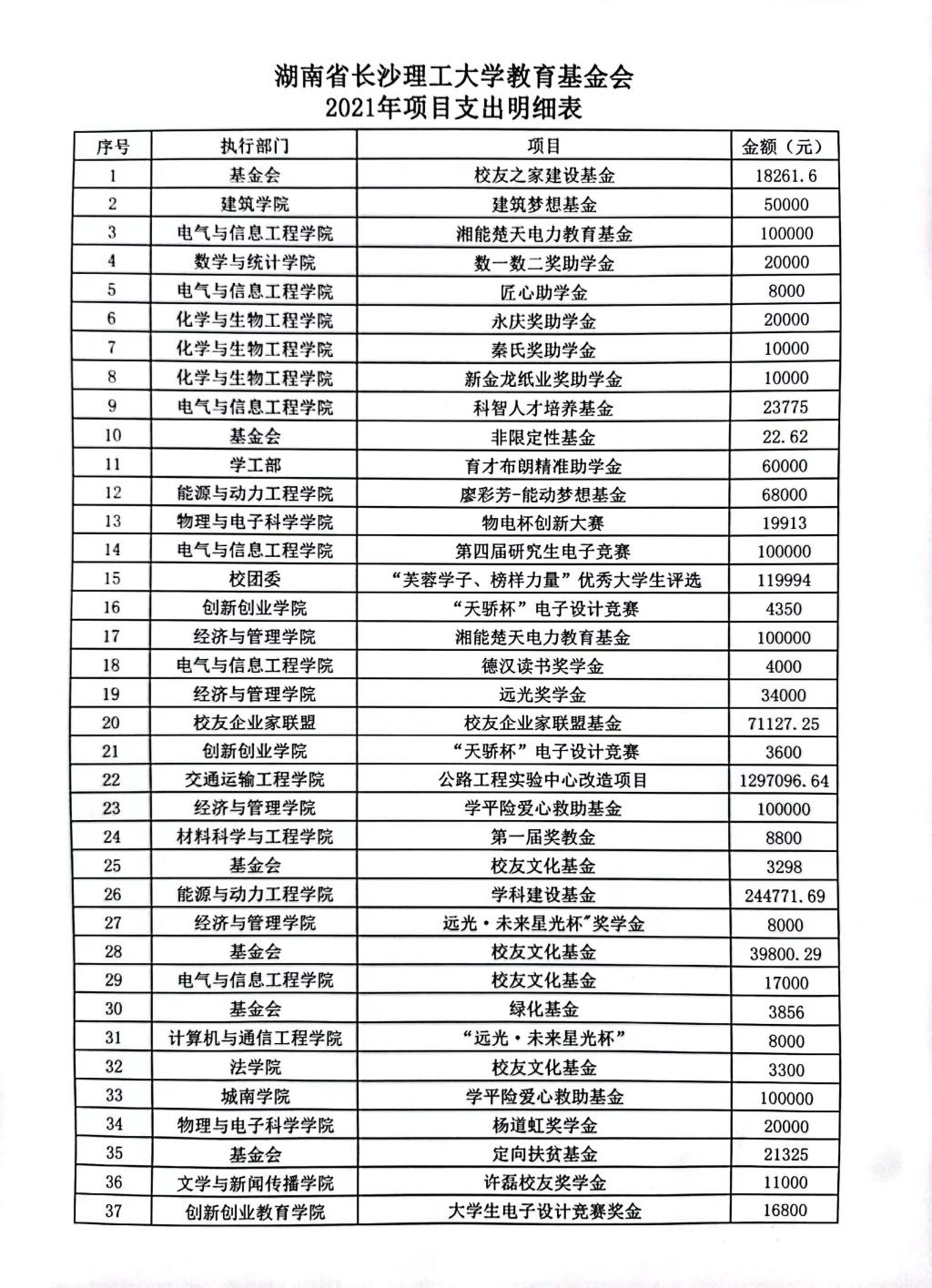 湖南省开云kaiyun体育教育基金会2021年项目支出明细表