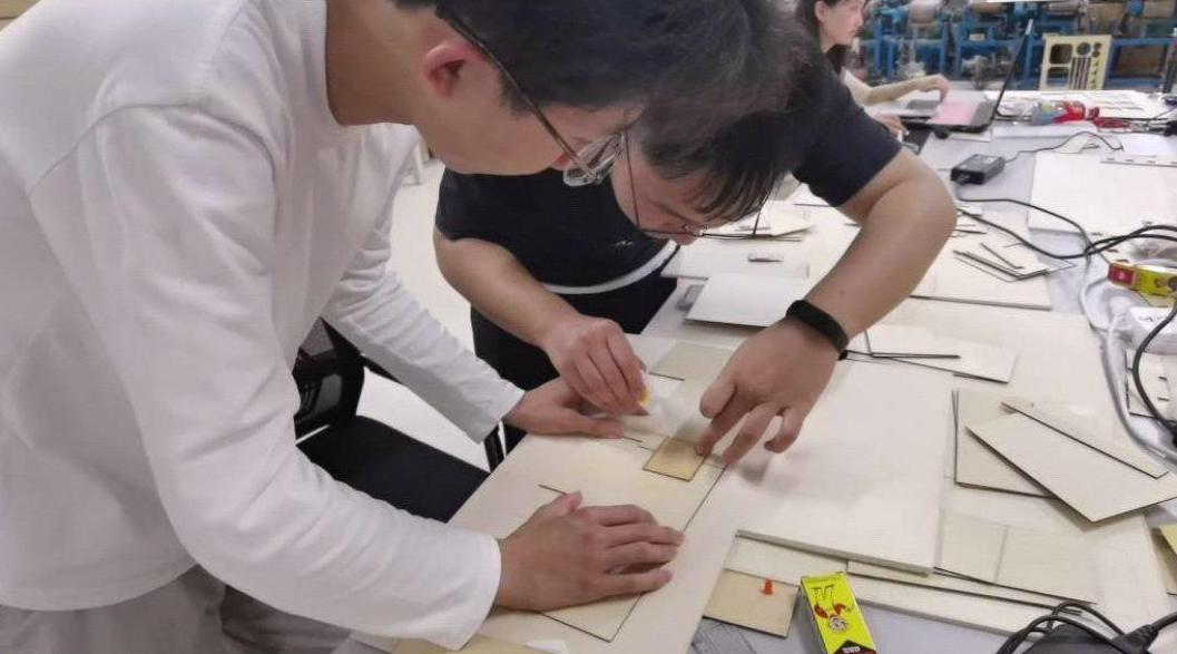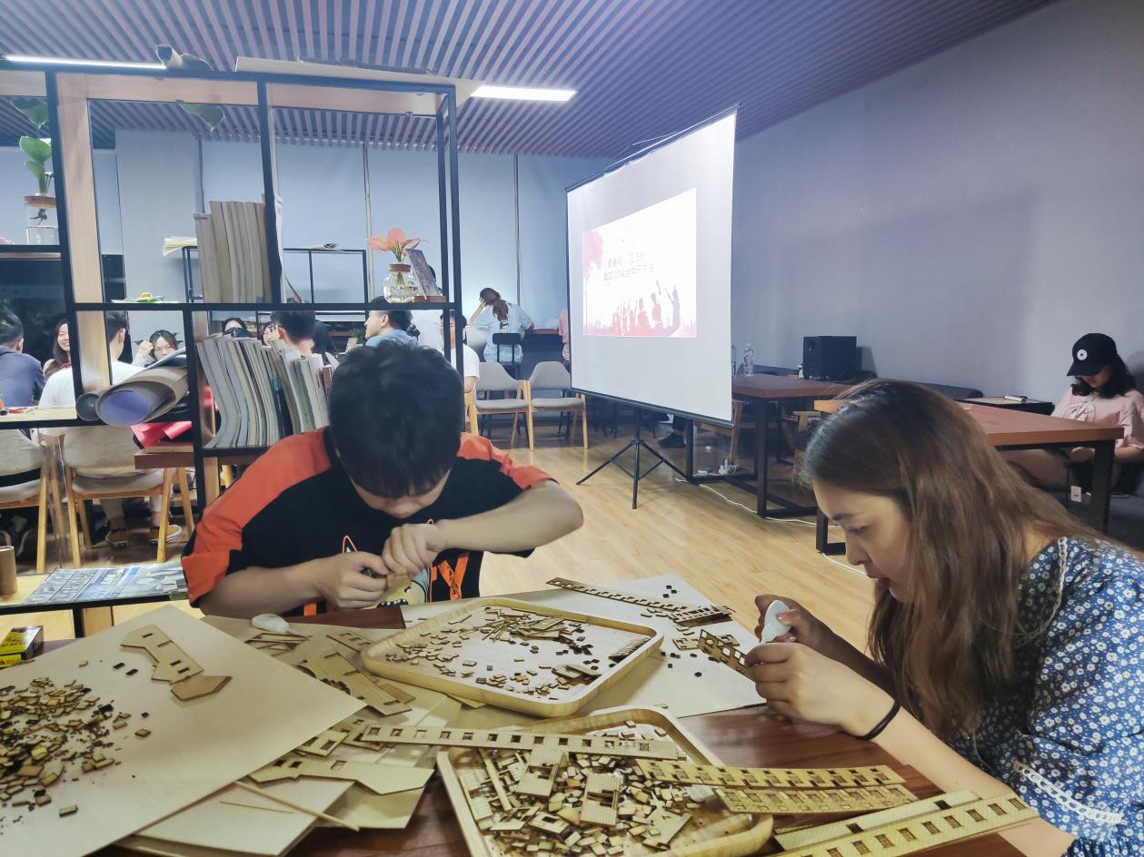 此次红色建筑模型大赛于5月10日正式开展,为期一个月。比赛初期,建院学生顶着初夏的骄阳,在指导老师的带领下,去往各组选定的红色建筑所在地进行测绘。同学们手握卷尺测量,绘图记录。在遇到测绘困难时,他们集思广益,提出解决办法,并投入到实践当中去。在合理的分工和团结互助下,他们成功收集数据,完成了对红色建筑的测量。同学们还在课下自行学习了cad等绘图软件,在电脑上绘制红色建筑的平面图、立面图、剖面图,并学习运用切割机进行打印。他们将图纸导入切割机,得到切好的零件,最后根据平面图和立面图将模型搭建好。在克服种种困难后,各组的模型终于完美呈现在眼前。