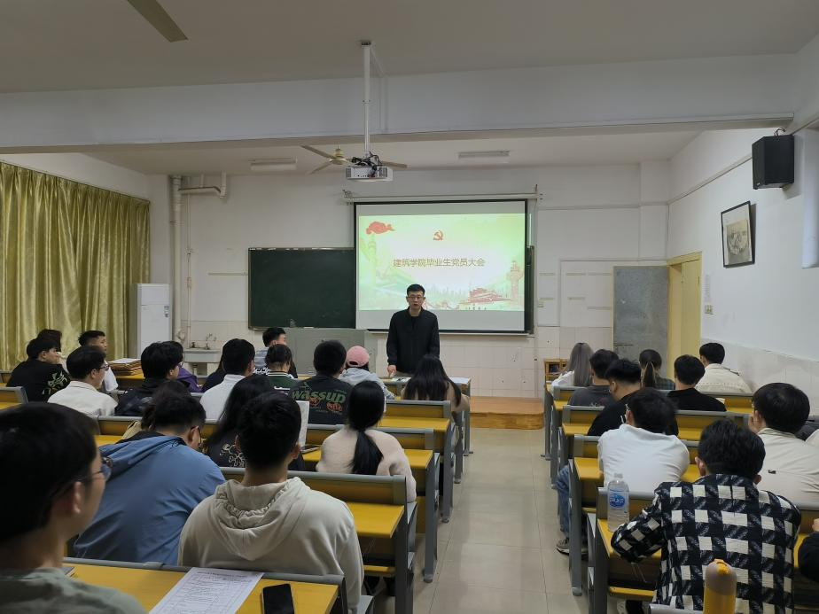 3月24日,建筑学院在16号教学楼313教室召开毕业生党员大会,开展主题党日学习活动。学院学工办老师王宇霖、学生党支部支委以及全体毕业生党员参加了会议。