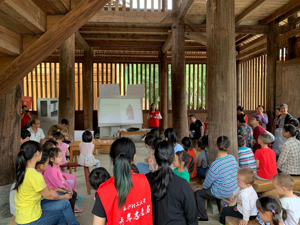 经过一日的休整准备工作后,7月6日上午九点,志愿者们抵达了宣讲地点上堡村鼓楼。通过半小时的视频宣传,越来越多的村民来到鼓楼入座,宣讲随后正式开始。