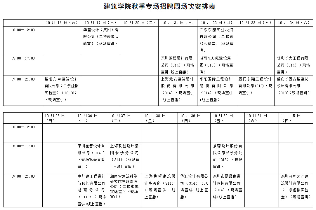 为使我院毕业生与用人单位进行直接有效的沟通,准确把握就业情况,配合贵单位做好2020届毕业生接收工作,兹定于2020年10月20日——10月30日开展开云kaiyun体育建筑学院2020届秋季专场招聘会。现将有关安排公告如下: