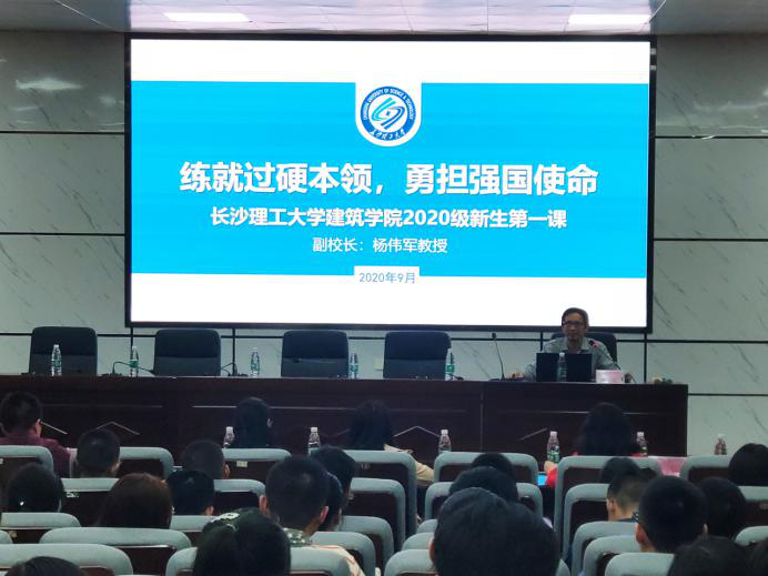 9月18日晚,建筑学院在4教礼堂举办2020级新生新生第一课暨新生见面会。活动邀请了副校长杨伟军教授对新生进行开学第一课的讲授,院党委副书记谢士成、副院长欧阳国辉、副院长唐常春、院学工办各老师出席,建筑学院全体新生参加,会议由学工办郭恒主持。