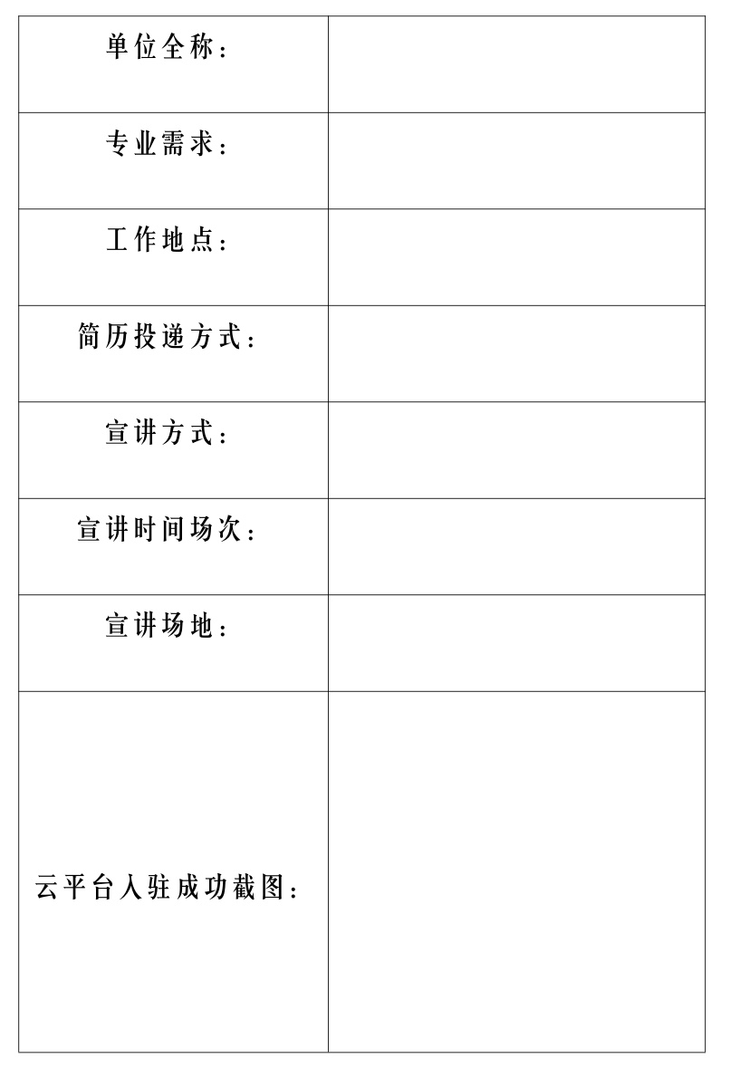 3、为达到更好的宣传、宣讲效果,我院将通过官网、微信平台、学生群提前发布专场招聘信息,用人单位可在 3月18日前提供以下材料:电子宣传信息海报、招聘简章、公司宣传信息等。(不做强制性要求)