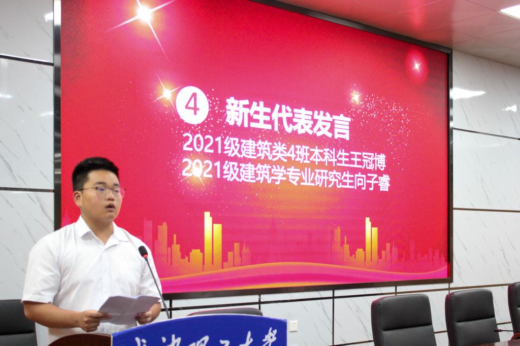 在新生见面会上,老生代表建筑类2001班学生黄珊分享了自己的经验,总结了自己的成绩。她鼓励同学们在新的人生征程,提早计划,抓住机会,塑造全新的自己新生代表2104班本科学生王冠博希望同学们能够抓住机会立鸿鹄志,做奋斗者新生代表21级研究生学生向子睿则强调了研究生学习要深入了解学科前沿,探求学科真相,体系定位,有的放矢