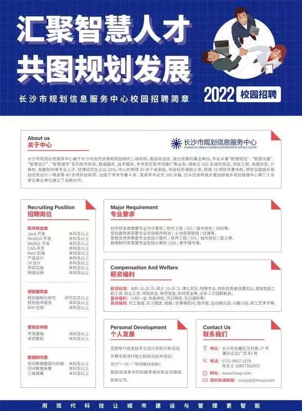 【单位简介】长沙市规划信息服务中心是长沙市自然资源和规划局的二级机构,具备“城乡规划编制” 乙级资质、测绘乙级资质、CMMI 5级资质、涉密档案数字化加工乙级资质、涉密信息系统集成乙级资质,并获得“ISO9001”质量管理体系认证、主要职责是为城乡建设提供规划信息技术服务,负责自然资源和规划信息数据整理、挖掘分析及档案数字化加工,自然资源和规划技术服务与咨询。