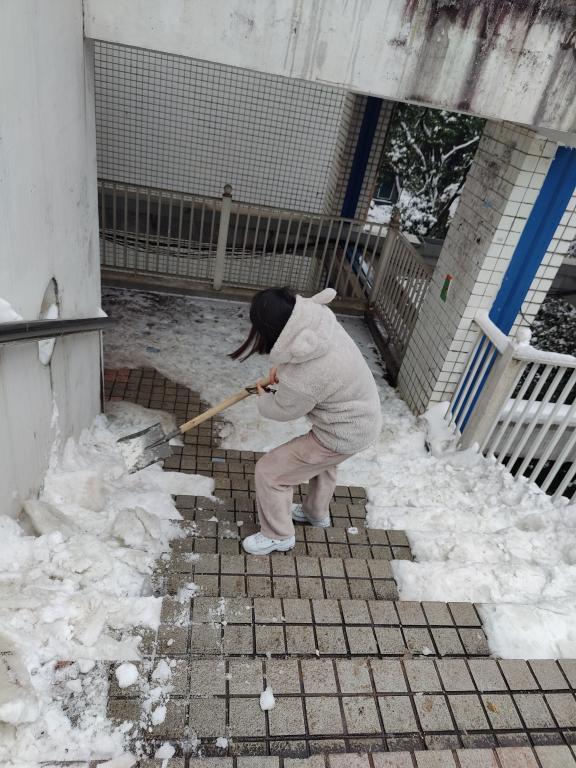 初雪已过,连续两天的降雪为校园披上了银装但是被厚厚的积雪所覆盖的道路存在极大的安全隐患降低广大师生的出行难度,保障师生的出行安全建筑学院于1227日开展道路积雪清理实践活动