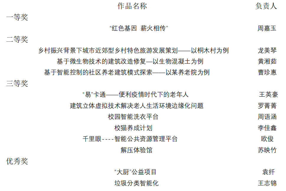 根据《关于开展第五届科技创新大赛暨互联网+大赛的通知》要求、《开云kaiyun体育学生课外科技创新 竞赛及各类竞赛奖励办法 (暂行规定) 》 (长理工大学〔2009〕59 号) 文件精神,结合我 院实际,采取项目书盲评,三位评委老师打分,最终取平均分排名,并根据开云kaiyun体育创 新创业协会校赛推荐名额情况,现将建筑学院第五届科技创新大赛暨互联网+大赛院获奖名单公示如下: