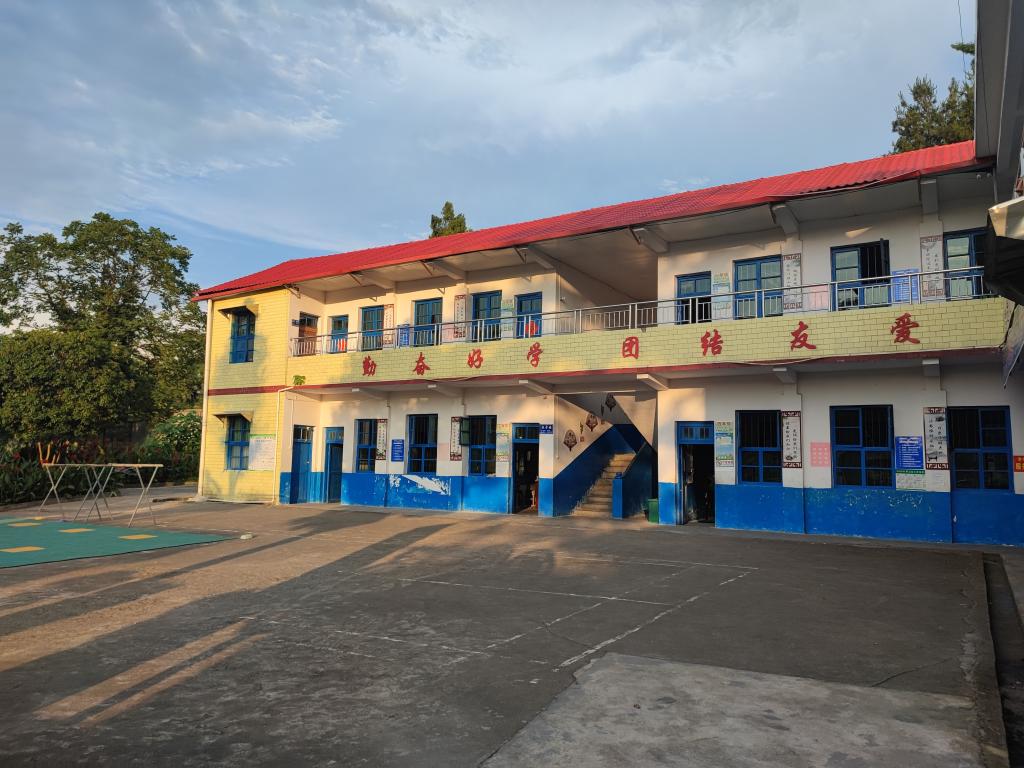 走进坪山小学,实践团看到学校只有两层小楼和食堂,娱乐设施也有一个滑梯。整个小学一共四个教室,一个教室为一个年级,每个班只有大概15-20个学生。在欢迎会上,蒋新雄主席详细介绍了坪山现状,风土文化,居民户口以及规划的要求,讲述了当地乡村振兴的政策,进行了工作的具体安排。