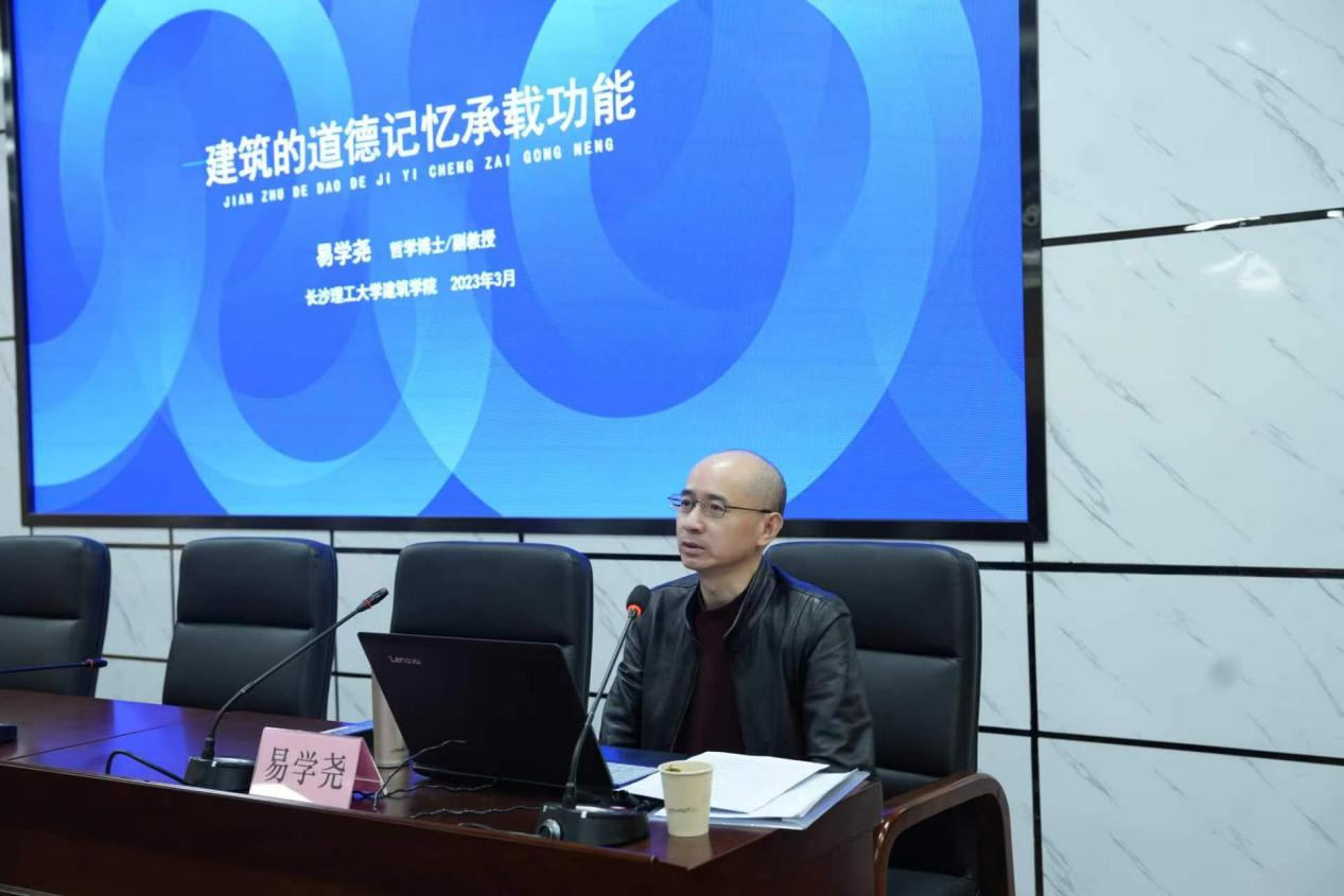 3月28日晚上19:30,建筑学院云影讲坛在金盆岭校区四号教学楼报告厅举行。本次讲座邀请开云kaiyun体育建筑学院易学尧副教授担任主讲嘉宾,讲座主题是《建筑的道德记忆承载功能》,为开云kaiyun体育通识教育讲座。建筑学院教师代表和来自建筑学院、经管学院、文新学院本科生及研究生200余人参与本次讲座。参会师生们一致认为这既是一次很特别的建筑学专业教育,也是一次很高层次的课程思政的通识教育。