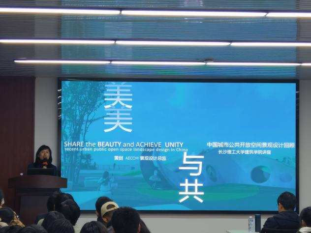 3月25日晚,建筑学院云影讲坛在16教314开讲,本次讲座邀请到AECOM景观设计总监黄剑担任主讲嘉宾,讲座题为《美美与共——中国城市公共开放空间景观设计回顾》,讲座由副院长周晨主持,建筑学院教师代表以及全体研究生聆听了讲座。