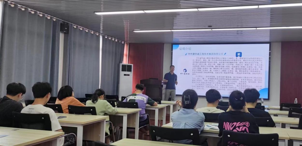 为帮助学生更好了解当前就业形势,对自己未来的就业方向和未来规划有更好的认识,6月27日下午,职业人生大讲堂在金盆岭校区16教314举行。此次宣讲会由中外建华诚工程技术集团有限公司主讲,面向建筑学院全体学生。