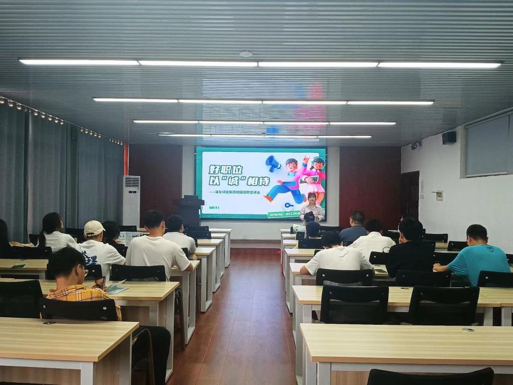 本次宣讲会共分为三个部分。首先主讲人对公司进行了详细的介绍,指出诚友绿建是中国新型建筑工业化领跑者,并就当前建筑行业的局势,指出了公司的发展方向,建设思路以及目前公司的现状。随后,主讲人介绍了诚友以往建设的产品及其发展方向的可观性,并对其具有匠心的产品、专业设计管理的团队、公司的待遇和丰富的团建活动进行介绍,进一步调动了同学们的热情。最后,主讲人用一个视频展现诚友的绿建发展对美丽乡村建设、国家绿建发展等起到重要作用,进一步吸引同学们的热情。宣讲会结束后,同学们踊跃提问,主讲人耐心回答,现场氛围热烈,随后多名同学投递简历参加面试。