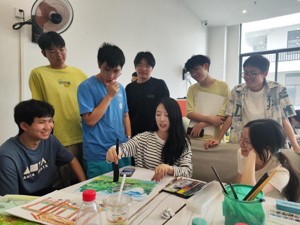 在写生期间,李洁老师、殷俊老师、刘洵老师、舒放老师于7月6日、7月8日、7月10日下午对同学们的作业进行了点评与指导,同学们有幸得到了各位专业老师的一对一的讲解与示范,在绘画技法、色彩搭配及创意构思等方面均获得了中肯实用的建议,取得了显著进步。