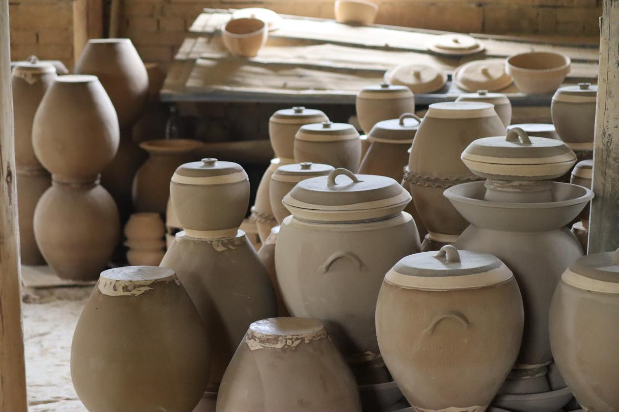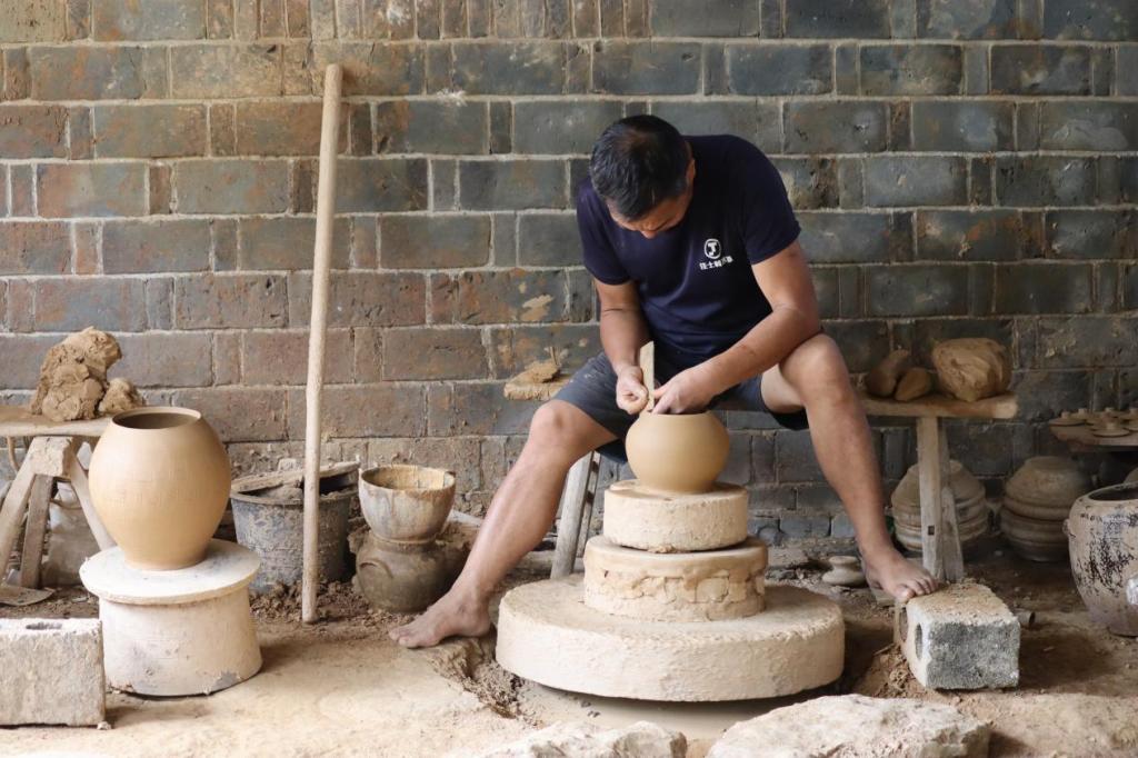 下午,实践团前往十里村,探访了古窑遗址。在这里,大家亲眼见证了最原始的拉胚技艺,感受了手工艺人的匠心独运。在与邱师傅的深入交流中,团队了解到十里窑侗黑陶烧制技艺已有六百多年的历史,这门技艺的传承与发展,离不开一代代匠人的坚守和创新。