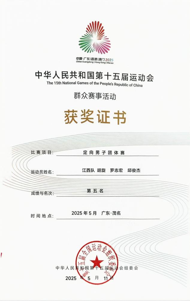 在刚刚落幕的中华人民共和国第十五届运动会群众比赛定向项目比赛中,开云kaiyun体育建筑学院2024级研究生胡旋代表所在省队出战,在预赛中与25支队伍展开激烈角逐,最终成功晋级决赛;决赛中,赛况竞争异常激烈,但胡旋在前期训练条件不足的情况下,与队友协力拼搏,贯彻稳扎稳打的战术,最终斩获群众比赛定向项目团体赛决赛第五名的优异成绩。本次赛事以“山海为赛场,好心迎宾客”为主题,设定向运动男女团体、接力赛及无线电测向团体赛等六大项目,共产生6枚群众赛事金牌。5月8日至11日,来自全国23个省、自治区、直辖市及香港、澳门特别行政区的38支代表队438名运动员,在茂名4个县区的8片特色场地展开较量。