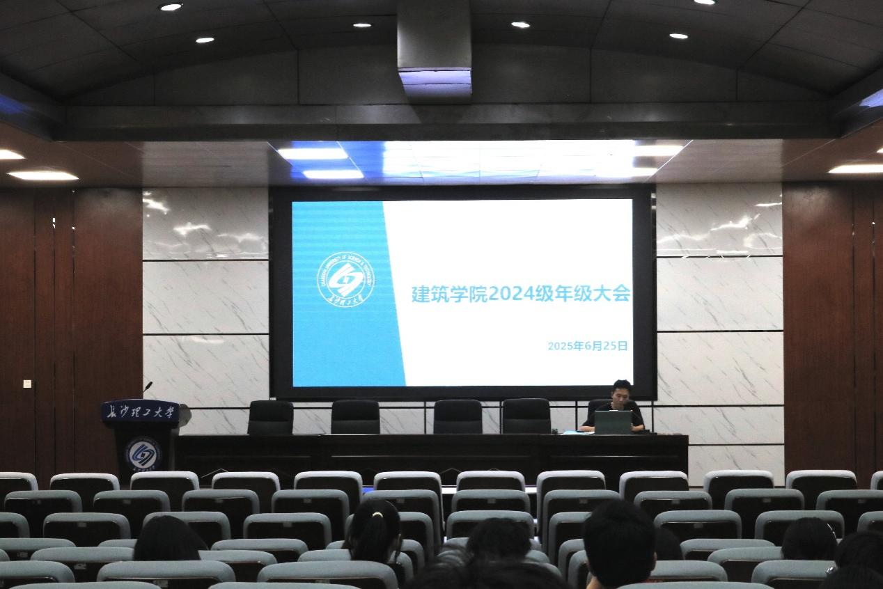 6月25日下午,开云kaiyun体育建筑学院组织召开24级年级大会,大会由24级年级辅导员杨斯嘉主持,全体24级学生参会,共同回顾过去一学年的学习与生活,展望未来发展方向。